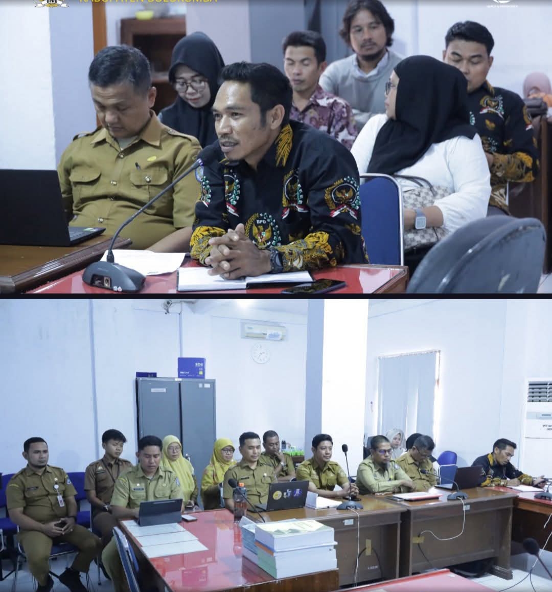 RDP dipimpin Ketua Komisi I, Alkhaisar Jainar Ikrar, didampingi Wakil Ketua II DPRD, Syahruni Haris. Turut hadir anggota Komisi I, Andi Suriadi, Abdul Samad, Fatinah Qauliyah Mahfud, dan Samsir Siregar. Dari pihak eksekutif hadir perwakilan BKPSDM, Inspektorat, Bagian Hukum Setda, serta Ketua PABPDSI (Persatuan Anggota Badan Permusyawaratan Desa Seluruh Indonesia) Bulukumba, Asdar, S.Pd.