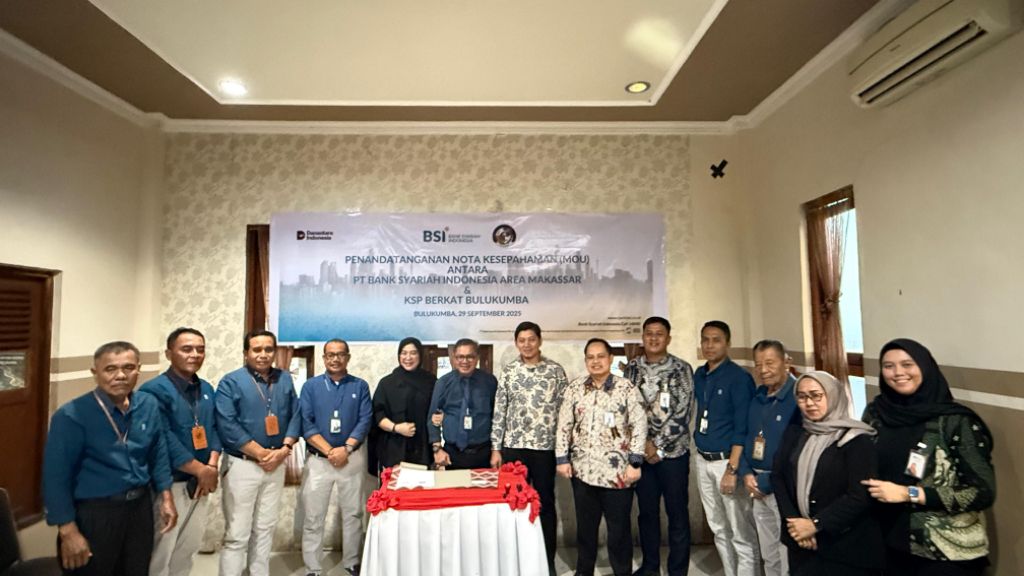 BULUKUMBA,BERITASELATAN.COM – Koperasi Simpan Pinjam (KSP) Berkat Bulukumba resmi menjalin kerja sama dengan PT Bank Syariah Indonesia (BSI) Area Makassar melalui penandatanganan Nota Kesepahaman (MoU) yang berlangsung pada Senin, 29 September 2025 di Bulukumba.