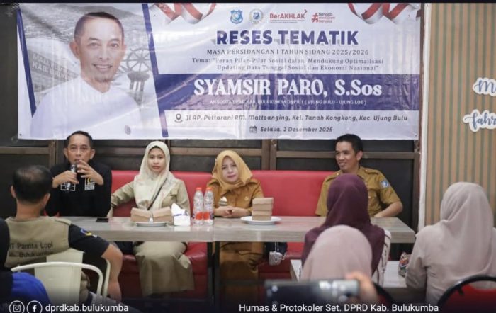 BULUKUMBA,BERITASELATAN.COM – Anggota DPRD Kabupaten Bulukumba, H. Syamsir Paro, S.Sos, (PAN) dari Dapil 1 (Ujung Bulu – Ujung Loe) melaksanakan Reses Tematik di Jl. A.P. Pettarani/RM Mattoanging, Kecamatan Ujung Bulu, Selasa, 2 Desember 2025.