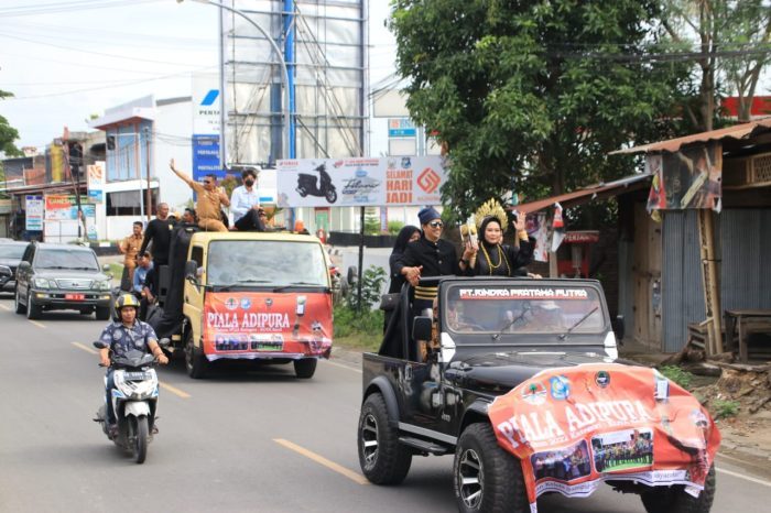 Ketua DPRD H. Rijal melepas arakan Piala Adipura yang dibawa oleh pasangan pemuda pemudi berbaju adat hitam di atas mobil Jeep terbuka untuk kemudian diarak keliling kota Bulukumba.