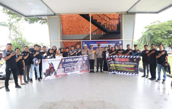 BULUKUMBA,BERITASELATAN.COM – Satuan Lalulintas Polres Bulukumba Polda Sulsel menggelar apel Deklarasi larangan penggunaan Knalpot yang tidak sesuai spesifikasi teknis.